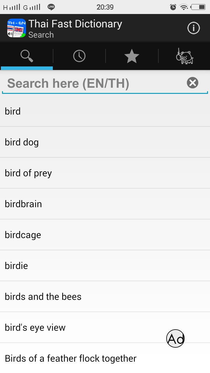 2.เสิร์ชคำศัพท์ทั้งไทยหรืออังกฤษลงตรงช่องนี้ และคลิกศัพท์ที่ค้นหาที่ปรากฏขึ้นมา เช่นคำว่า bird จะปรากฏหน้าจอดังนี้
